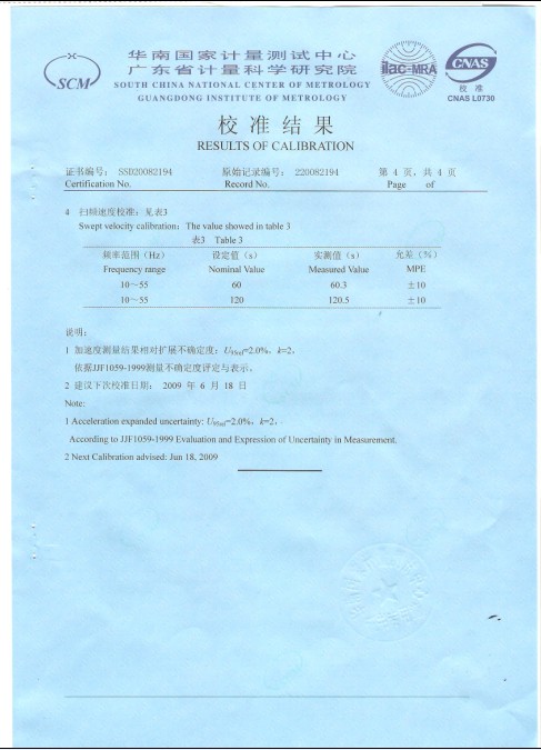 振動試驗臺校準證書-廣東計量院-ABB集團