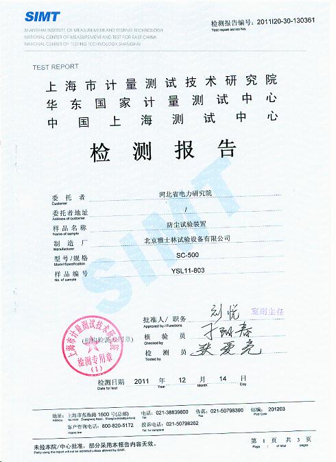 >>砂塵試驗(yàn)箱檢測報(bào)告-上海計(jì)量院-河北電科院