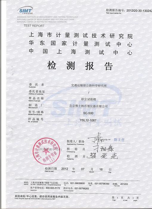 >>砂塵試驗箱檢測報告-上海計量院-交通運輸部
