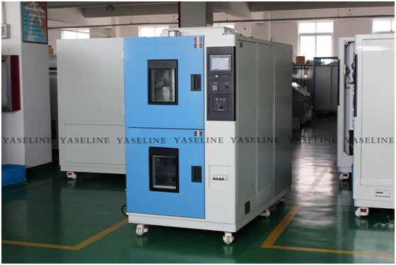 溫度沖擊試驗箱根據試驗需求及測試標準分為三箱式和兩箱式,區別在于試驗方式和內部結構不同。三箱式分為蓄冷室,蓄熱室和試驗室,產品在測試時是放置在試驗室。兩箱式分為高溫室和低溫室,是通過電機帶動提籃運動來實現高低溫的切換,產品放在提籃里,是隨提籃一起移動的。